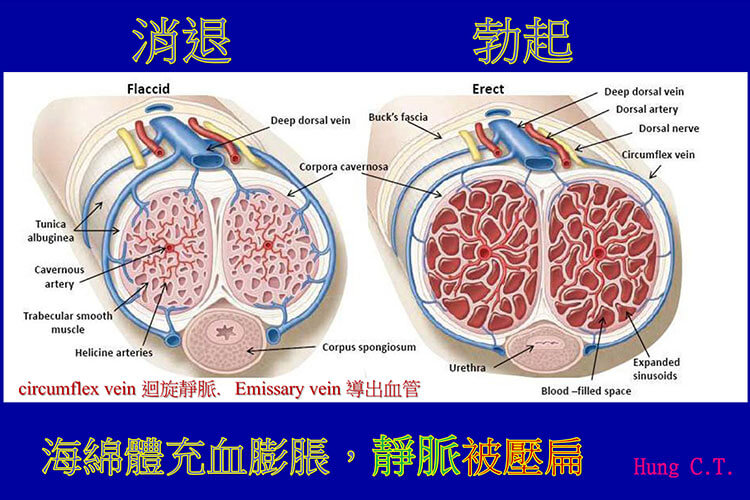 男性勃起的主要途徑是由男性荷爾蒙主導的性沖動引起的。在性刺激下,陰莖海綿體內的內皮細胞和神經末梢會釋放一氧化氮,使得海綿體的平滑肌肉放鬆,從而使血液充分進入陰莖海綿體,實現充血和勃起。當陰莖無法達到或維持足夠的硬度進行性行為時,超過性行為嘗試的25%以上發生障礙,就可稱為勃起功能障礙問題。影響勃起功能的原因非常複雜,包括器質性障礙多出現在老年男性,因為正常老化導緻性行為反應時間延長,陰莖需要更強的刺激才能適當勃起,或者是心血管、神經、內分泌係統疾病,如帕金森病或阿爾茨海默病;心理方麵則包括抑鬱、對自我失去信心或害怕性錶現不佳等因素。
