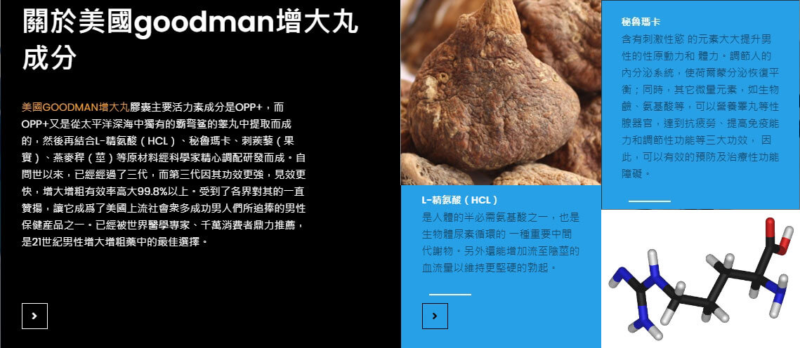 美國GOODMAN增大丸以科學比例調配,結合來自世界各地的高效成分,發揮協同作用,全面提升男性表現:
