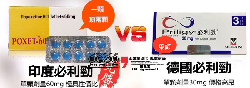 比較項目 原廠必利勁(Priligy) 印度必利勁(Poxet-60)
