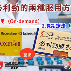 若您不確定如何服用、如何選購學名藥,歡迎向【大樹藥局】藥師諮詢,我們提供正品保證、藥師優先指導和優惠價格方案,幫助用最安心的方式改善早洩問題!