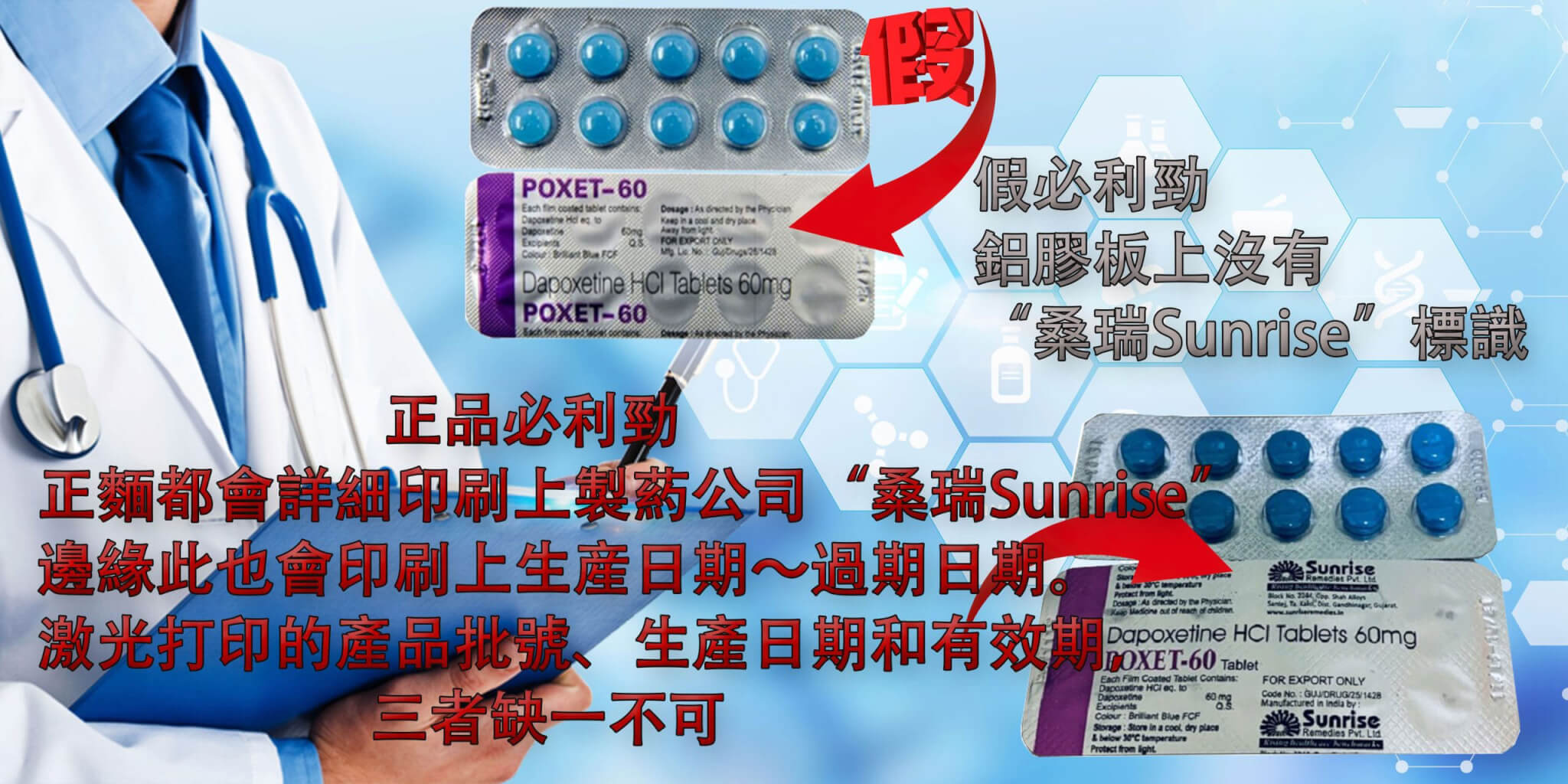 必利勁,是所有男性唯一指定的治療早洩藥物,學名被稱為達泊西汀,也叫“藍色小藥丸”。它屬於一種快速起效和代謝的選擇性5-羥色胺再吸收抑製劑,是一種用於治療16至84周歲男性早泄的藥物。然而,很多民眾在購買必利勁時經常會買到假藥或者僞藥,這讓他們非常苦惱。在不知情的情況下服用假藥會對身體造成嚴重的傷害。因此,大樹藥局請到專業的醫師:遊佩雯藥師為民眾講解辨識必利勁真假的方法有哪些?希望大大們認真閱讀並記住以下內容!!