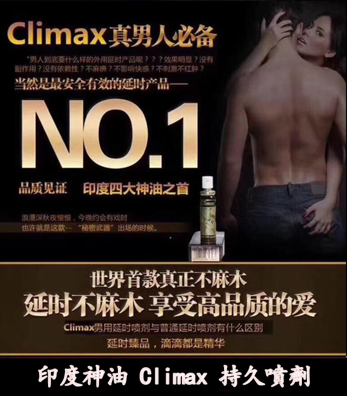 印度神油 Climax 持久噴劑是一款專門為男性設計的外用延時噴劑,旨在幫助延遲射精、增強持久力,顯著改善早洩問題,讓您在性愛中更加自信、持久。這款產品採用天然草本成分,安全無副作用,適合所有成年男性使用。其快速見效和簡單的使用方式,讓您在短時間內即可提升性愛質量,是一款理想的男性性功能增強產品。