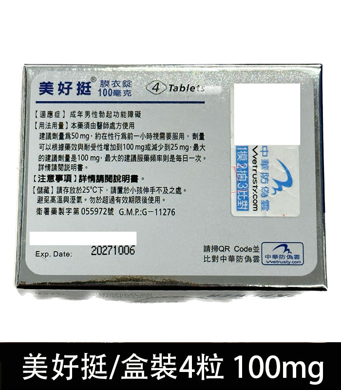 - 每盒含 4 錠 美好挺膜衣錠 OKPOWER,每錠含 100mg Sildenafil