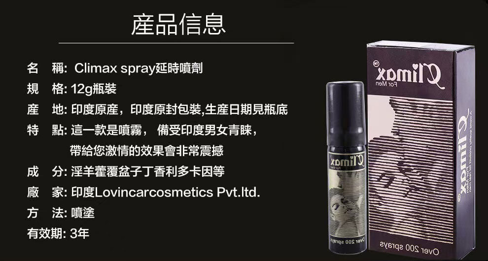 商品名稱: Climax印度神油持久液 / Climax延時噴霧
