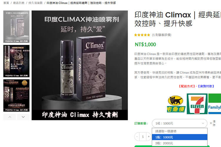 - 印度神油 Climax 屬於進口私密商品,台灣藥局通路不常引進此類非處方延時用品